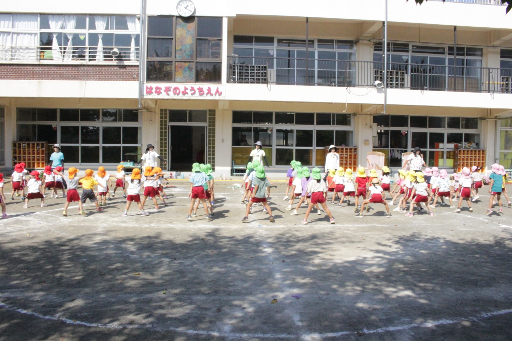園庭で元気に体操・フォークダンスをします。
